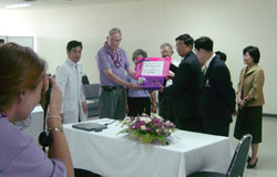 Princesse Sirindhorns Hospital i BangkokEt nyt hospital var blevet bygget i udkanten af Bangkok, men der var ikke penge til at indrette hele hospitalet på 5 - 6 etager. Der var kun etableret en poliklinik og en skadestue. Der var næsten ingen møbler og ingen senge på de fleste etager. |